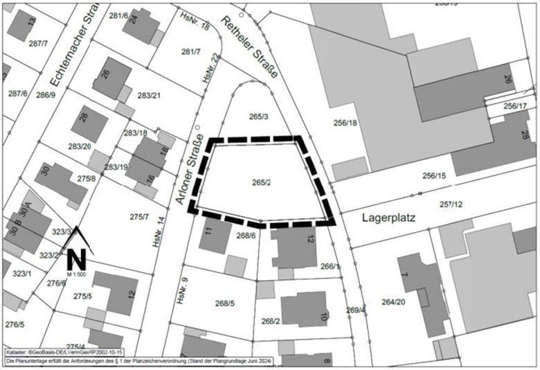 Bestandteile der Satzung sind die Planzeichnung M: 1:500 und die textlichen Festsetzungen sowie eine Begründung als Anlage.