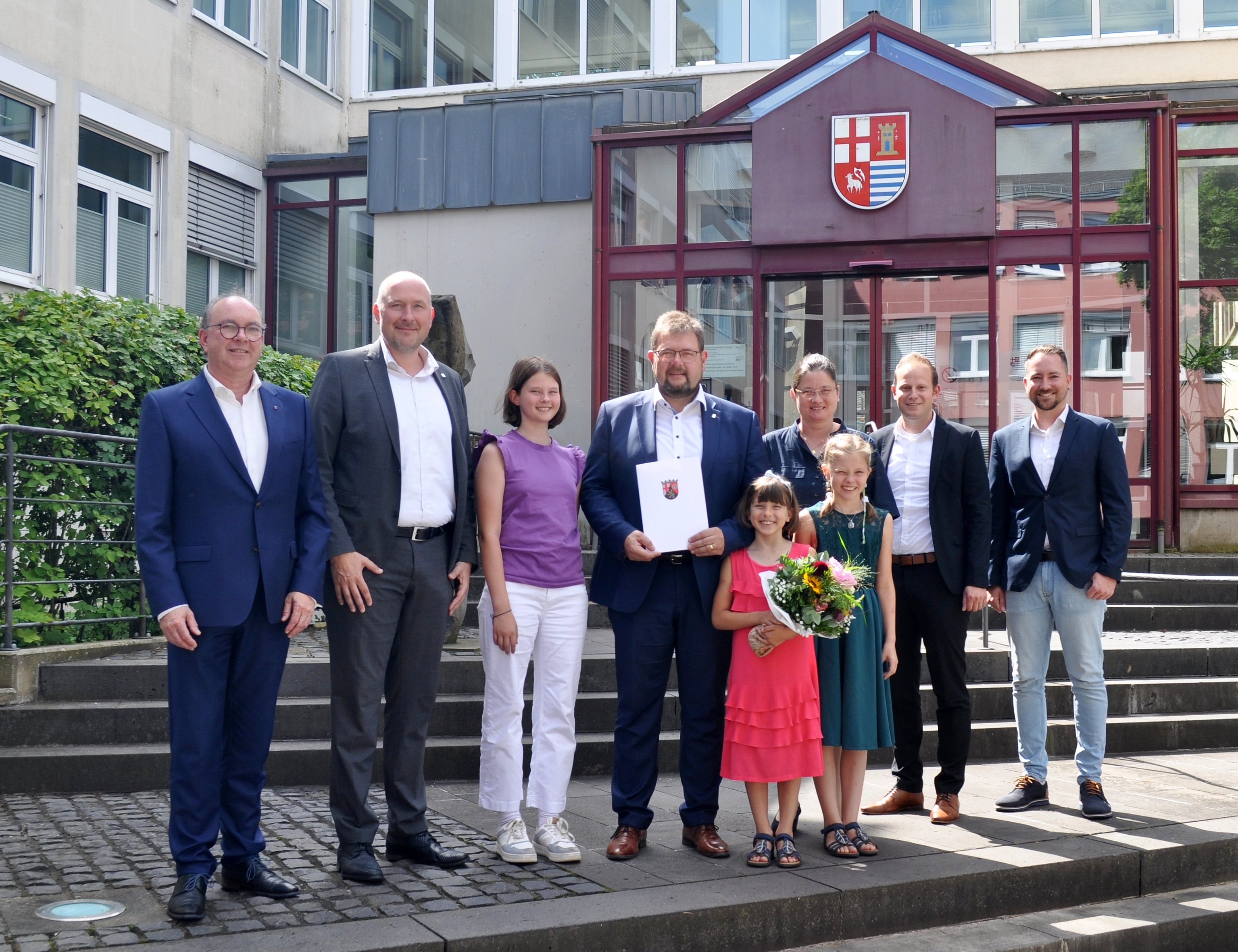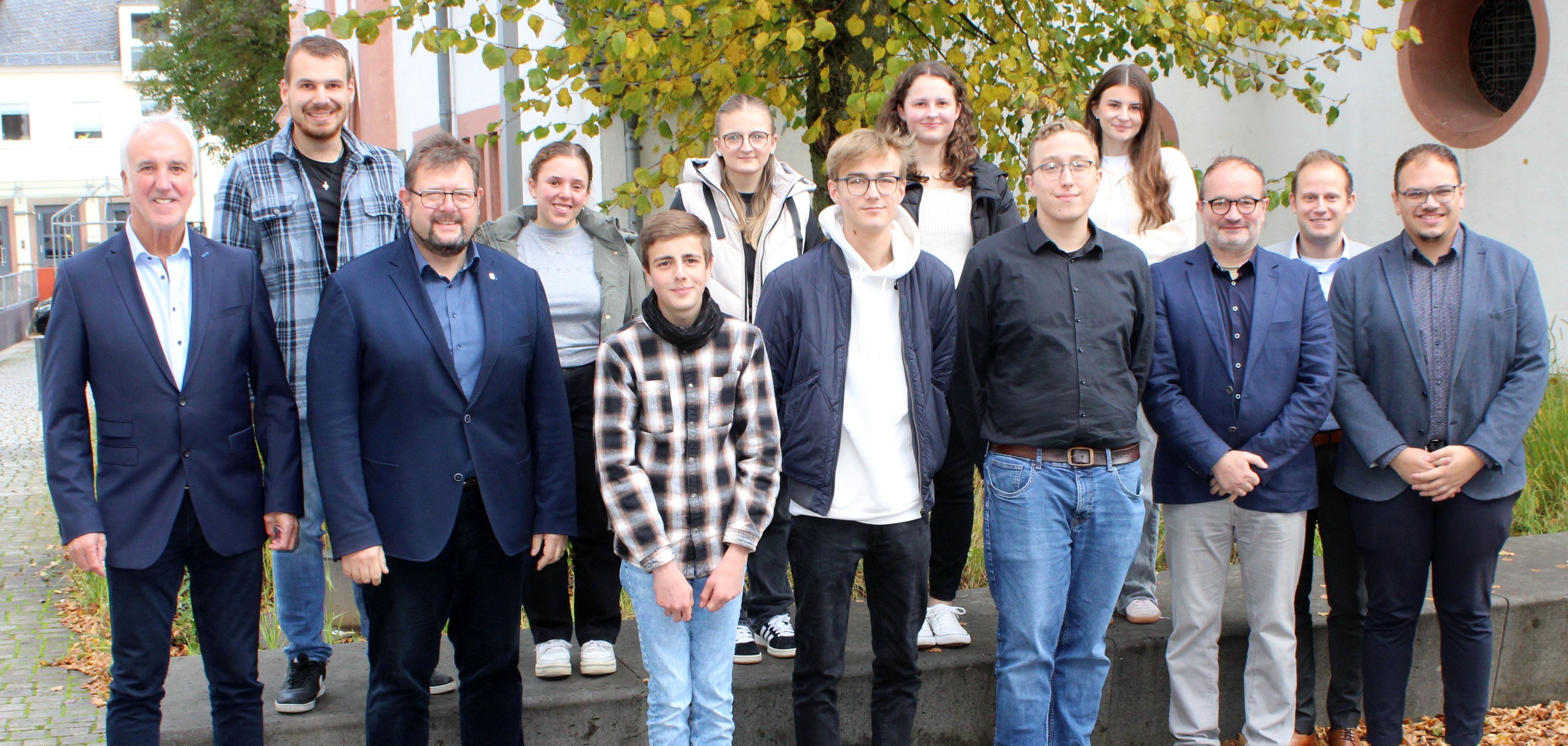 Im Rahmen einer kleinen Feierstunde hat Bürgermeister Joachim Kandels gemeinsam mit Büroleiter Paul Treuke und dessen Nachfolger Thomas Mayers, dem Personalratsvorsitzenden Friedbert Mayer und den Jugend- und Auszubildendenvertreter Dennis Stein und Nico Hoffmann die neuen Auszubildenden begrüßt.