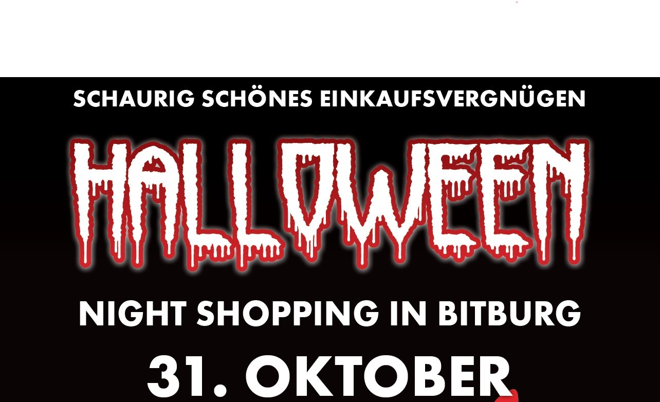 Alle Bitburger und Gäste der Stadt sind am Donnerstag, 31. Oktober 2024, wieder zu einem Einkaufserlebnis der besonderen Art eingeladen. Im Rahmen des Bitburger Stadtmarketings organisieren der Bitburger Einzelhandel und die Gastronomie an diesem Tag die 21. Halloween-Einkaufsnacht in der Fußgängerzone. Besondere Höhepunkte des Abends werden eine fantastische Laser-Show auf dem Spittel sowie die riesigen, beleuchteten "Nachtschwärmer" mit brandneuen Kostümen sein, die durch die Fußgängerzone ziehen werden.