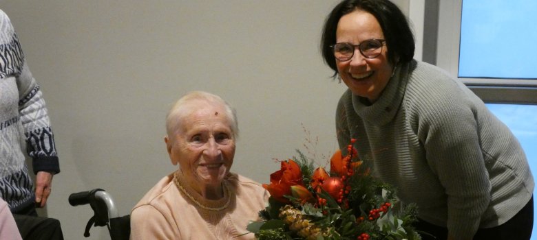 Einer der Höhepunkte der Veranstaltung war die Ehrung der ältesten Teilnehmerin und des ältesten Teilnehmers, Maria Frese (104 Jahre) und Jakob Zahnen (102 Jahre). Die Beigeordnete Frau Irene Weber dankte beiden für ihre Teilnahme und überreichte Blumensträuße. Frau Frese und Herr Zahnen sind noch beide bei guter Gesundheit und freuten sich sehr über die Ehrung durch die Beigeordnete.