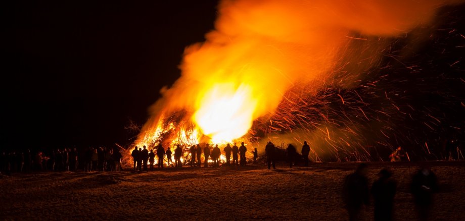 Das Feuer wird entzündet und ist weithin sichtbar. Nach dem Abbrennen ziehen die jungen Leute dann durch den Ort und sammeln Eier oder auch Geld als Lohn für ihre Mühen.