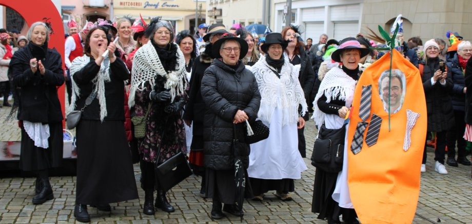 Die Mötscher Möhnenschar rückt auf das Rathaus vor