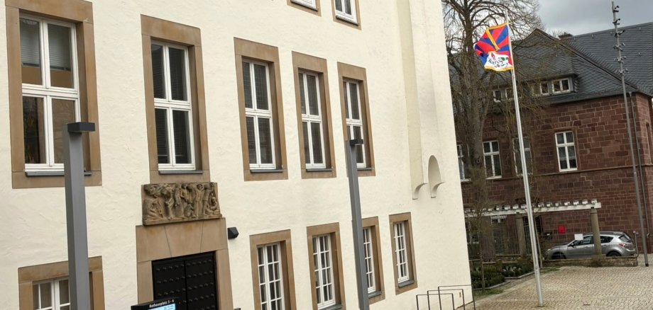 Anlässlich des Jahrestages des tibetischen Volksaufstands vom 10. März 1959 wurde am Rathaus die tibetische Flagge gehisst.