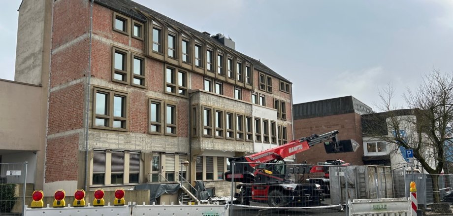 Die Stadt informiert über Verkehrsbeschränkungen anlässlich der bevorstehenden Abriss- und Modernisierungsarbeiten am Gebäude der Volksbank.