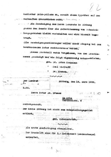 © Stadtarchiv Bitburg03.06.1942: Genehmigung des Kaufvertrages von Leo Kaufmann an Anton Köster bzgl. Grundstück "im untersten Gören" in Bitburg