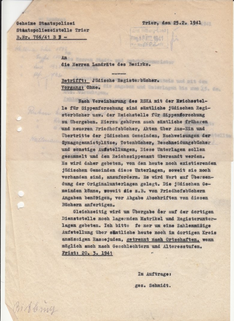 © Stadtarchiv Bitburg25.02.1941: Abgabe der jüdischen Registerbücher an die Gestapo