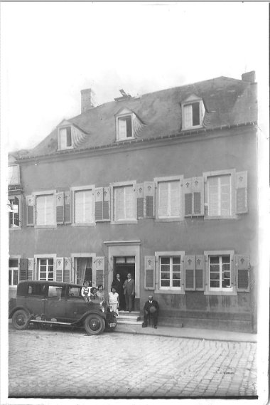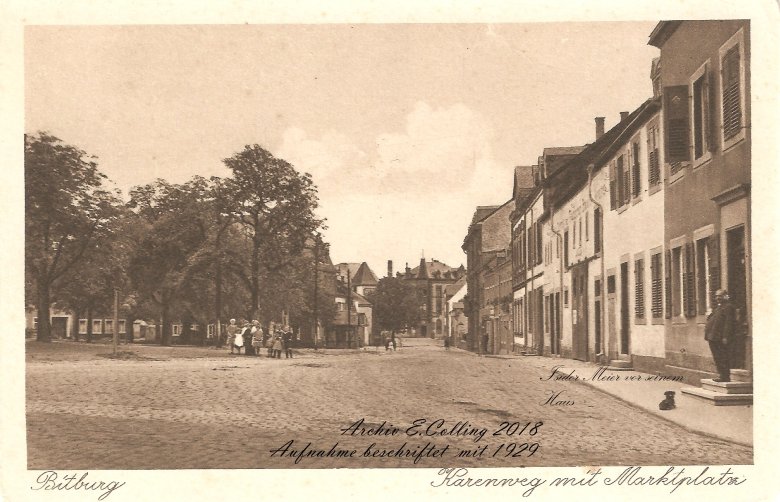Foto von Isidor Meier mit unbekannten Kindern vor einem Haus am Marktplatz Quelle: Stadtarchiv Bitburg