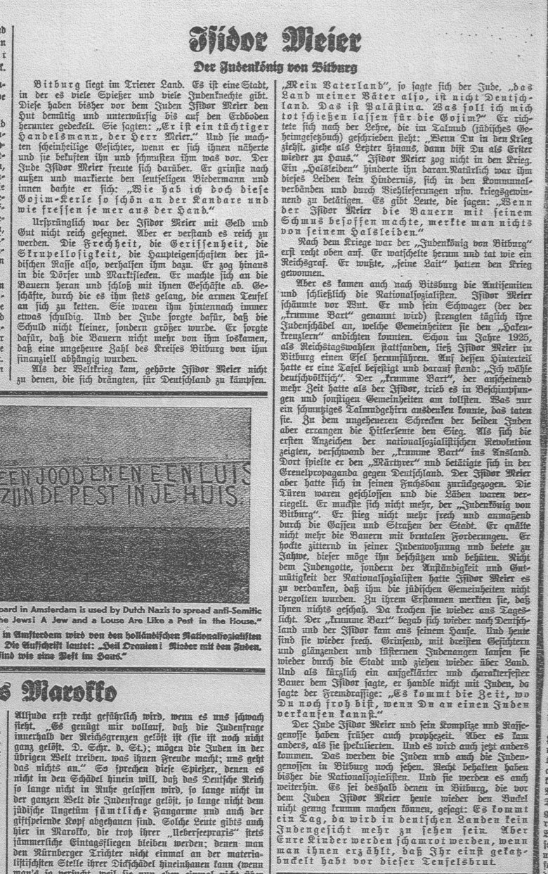 © Archiv Egon CollingArtikel aus dem "Stürmer" zu Isidor Meier 1935