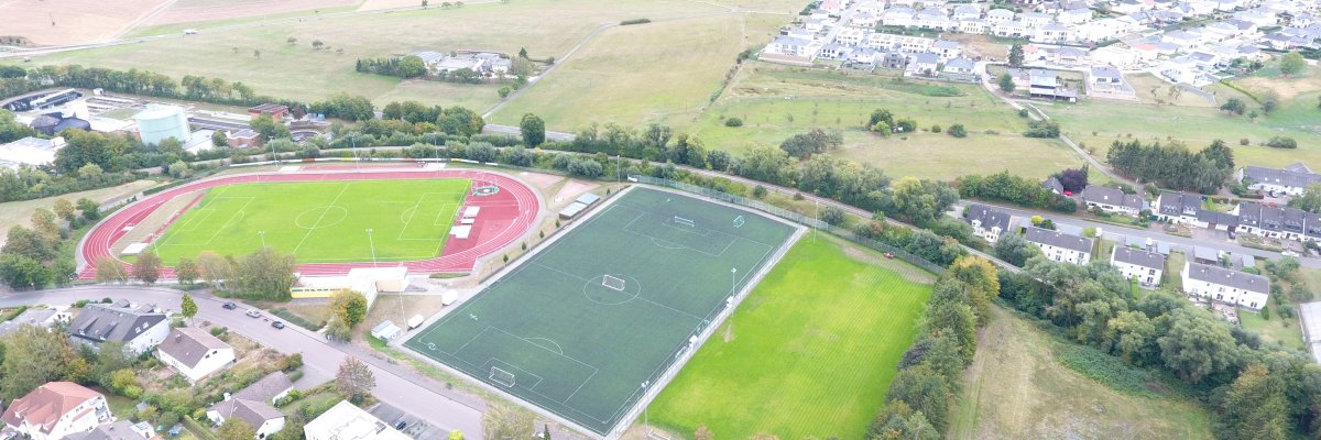 - Hauptrasen: Naturrasen (105 x 67 m) mit Drainage und LED-Flutlichtanlage
