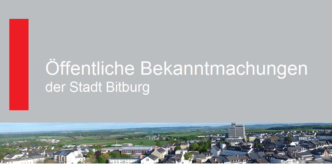 Zur Prüfung und Feststellung der Wahlergebnisse für die Wahl der/des hauptamtlichen Bürgermeisterin/Bürgermeisters der Stadt Bitburg am 15. Juni 2025 ist eine öffentliche Sitzung des Wahlausschusses der Stadt Bitburg für Montag, den 16. Juni 2025, 17.00 Uhr