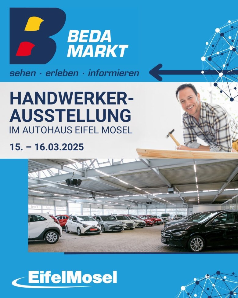 In der Ottostraße 2 (im Gebäude der Eifel Mosel Fahrzeugwelt) erwartet euch eine beeindruckende Handwerker-Ausstellung, bei der regionale Betriebe ihre Unternehmen präsentieren und neue Kontakte knüpfen können. Eine perfekte Gelegenheit, Innovationen zu entdecken und das Handwerk hautnah zu erleben!