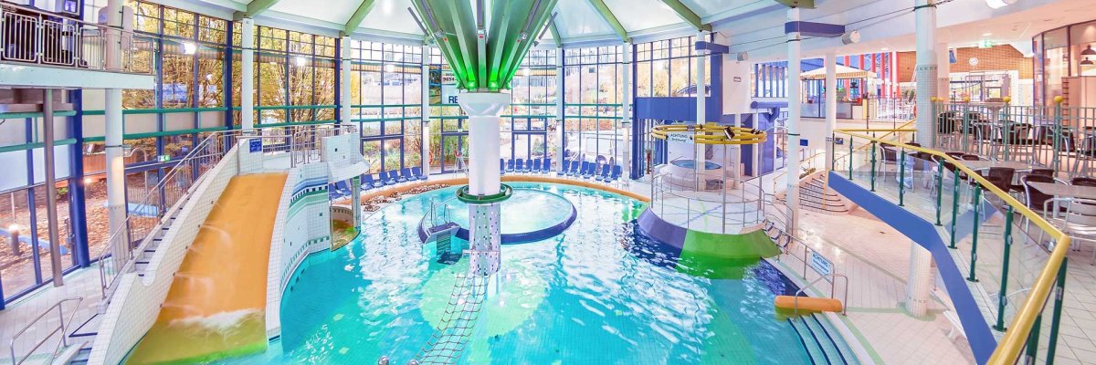 - Erlebnisbecken mit 55-Meter-Röhrenrutsche